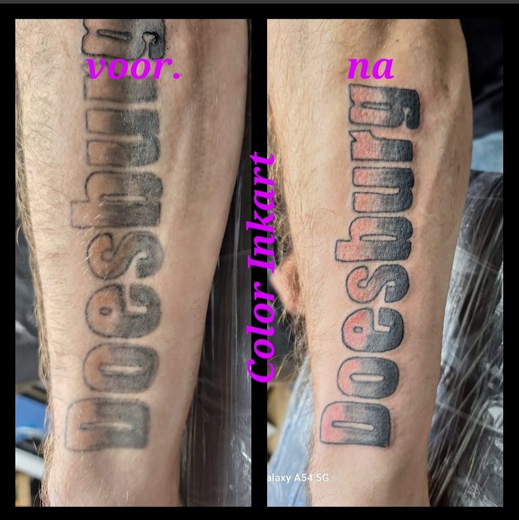 Oude of vervaagde tatoeages worden weer strak teruggezet.